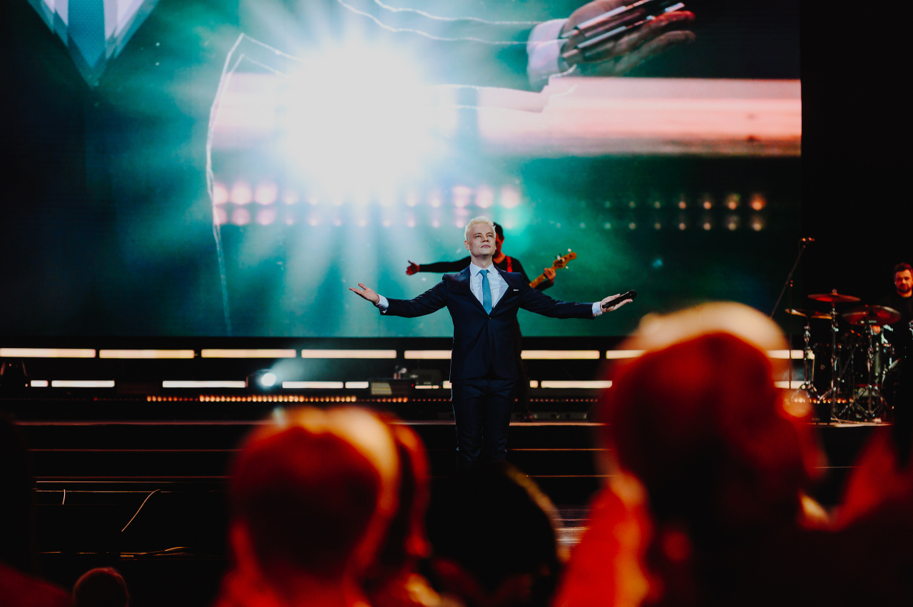 В новую концертную программу, премьера которой состоялась на Красной площади в День российского флага, вошли свежие песни, специально написанные музыкантом для «Победы!», и золотые хиты — «Встанем», «Я русский», «Моя Россия» и другие, уже полюбившиеся миллионам россиян композиции.