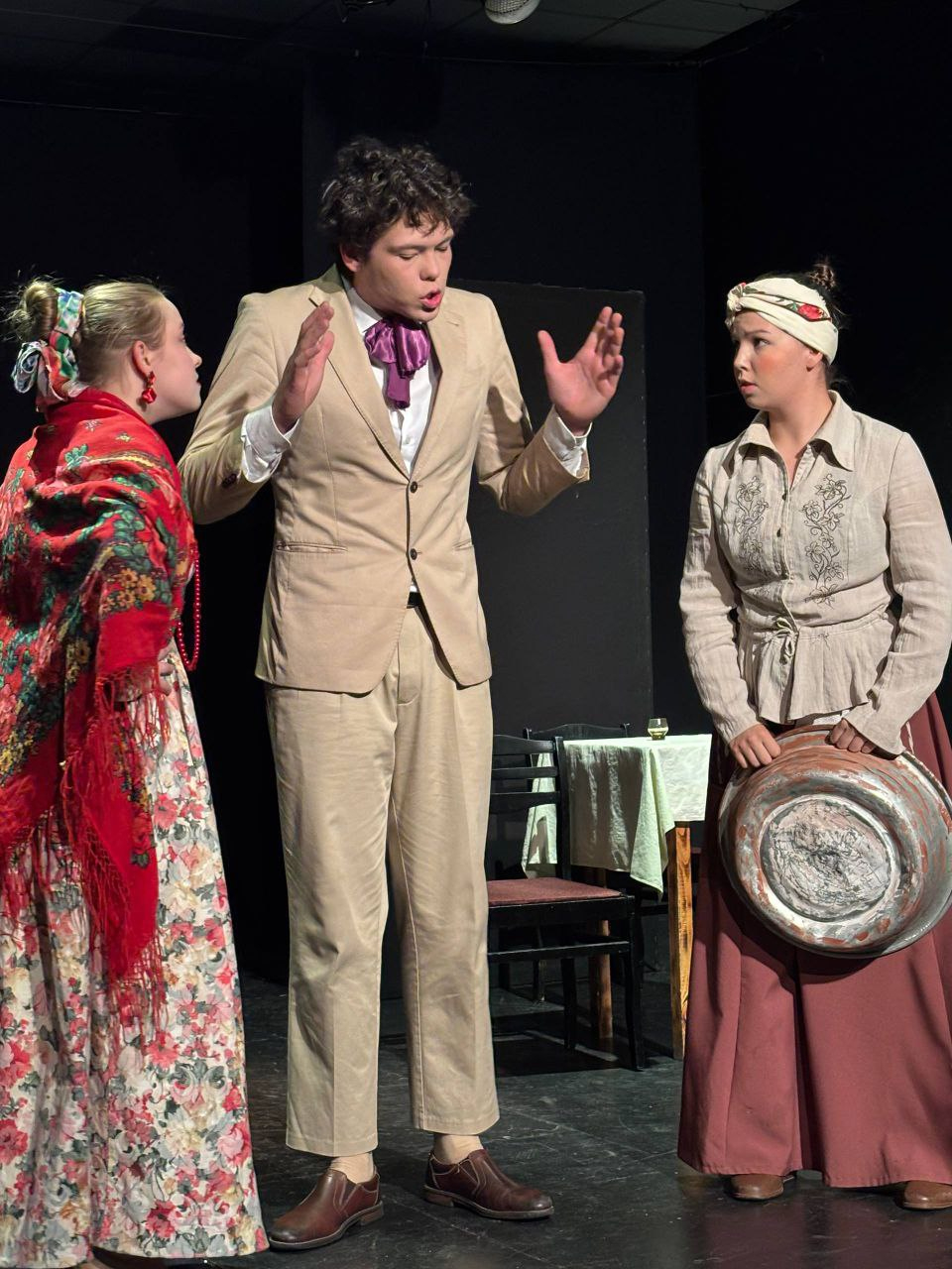 В спектакле задействованы студенты III курса вида Актёр драматического театра и кино.